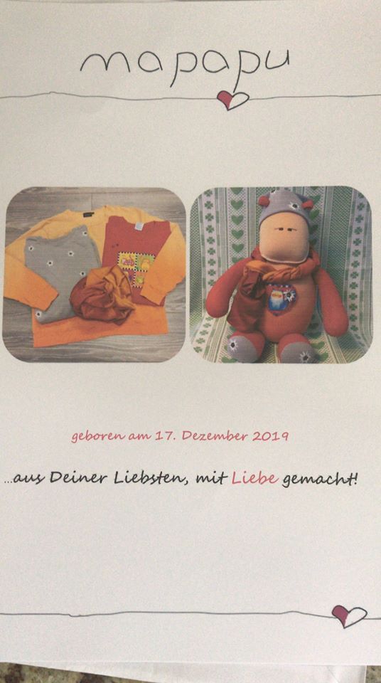 Die Mapapu's (Mama-Papa-Puppen) wurden aus Kleidern der verstorbenen Mama genäht (welche die Familie im Herbst hergeben konnte) .. Und sind nun bereit zum lieb haben.